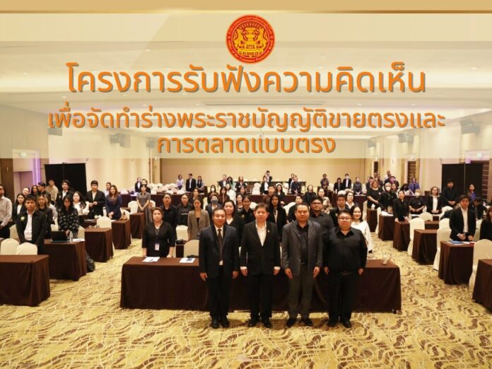 สำนักงานคณะกรรมการคุ้มครองผู้บริโภค (สคบ.) เดินหน้าภารกิจสำคัญยกเครื่องกฎหมายขายตรงและตลาดแบบตรง ให้เท่าทันโลกยุคใหม่ จัดโครงการรับฟังความคิดเห็น เพื่อจัดทำร่างพระราชบัญญัติขายตรงและตลาดแบบตรง (ฉบับที่..) พ.ศ. …. มุ่งยกระดับการคุ้มครองสิทธิผู้บริโภคให้เข้มแข็ง ควบคู่กับการสร้างความเป็นธรรมแก่ผู้ประกอบธุรกิจ