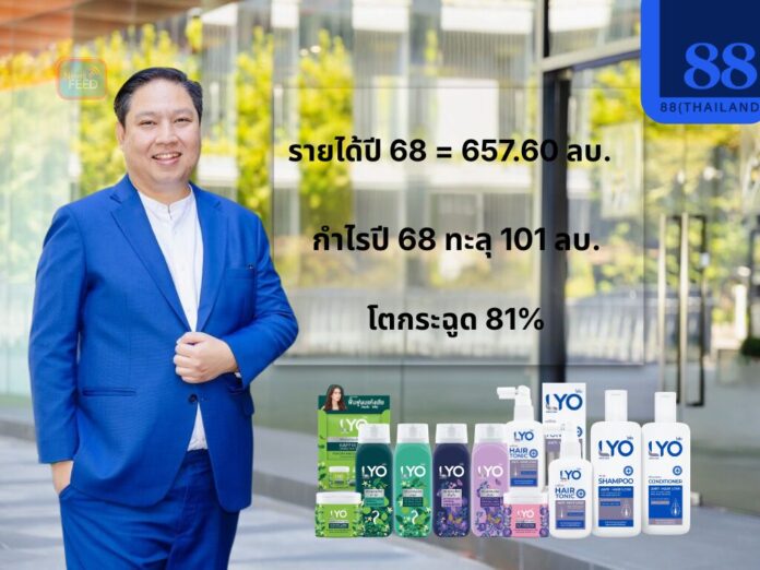 บมจ.88(ไทยแลนด์) หรือ 88TH โชว์ฟอร์ม ประกาศงบปี 2568 สุดสตรอง กำไรสุทธิทะยานสู่จุดสูงสุดใหม่ 101 ล้านบาท พุ่ง 81% กวาดรายได้รวม 657.60 ล้านบาท โต 37.63% (YoY) ตอกย้ำความสำเร็จของ แบรนด์ LYO (ไลโอ) และกลยุทธ์ออนไลน์ที่ดันยอดขายพุ่งแรง กว่า 86% บอร์ดเคาะจ่ายปันผล 0.1850 บาทต่อหุ้น จ่อขึ้น XD 29 เม.ย.นี้ ส่งซิกเตรียม Story ข่าวดี ลุยผลิตภัณฑ์นวัตกรรมใหม่เจาะกลุ่มวัยรุ่น เร่งเดินเกมรุกบุกตลาดจีน หวังปั๊มรายได้ ปีนี้เพิ่ม 30%