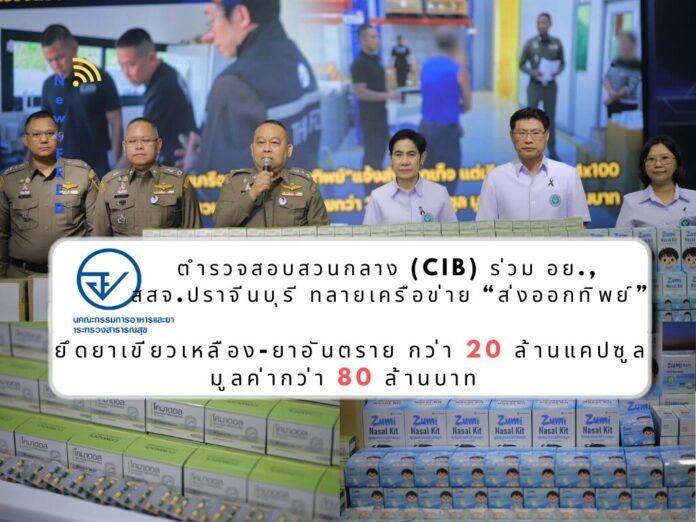 โดยในวันที่ 18 มีนาคม 2569 เจ้าหน้าที่ตำรวจ กก.4 บก.ปคบ. ร่วมกับเจ้าหน้าที่ อย. และสำนักงานสาธารณสุขจังหวัด (สสจ.) ปราจีนบุรี ได้เข้าตรวจสอบสถานที่ที่มีการลักลอบกระจายยาเขียวเหลือง (ทรามาดอล) จำนวนหลายรุ่นการผลิต ที่มีการรายงานการขายยาอันเป็นเท็จไปยังร้านขายยาต่างจังหวัด และไปยังประเทศเพื่อนบ้าน จำนวน 3 จุด ดังนี้