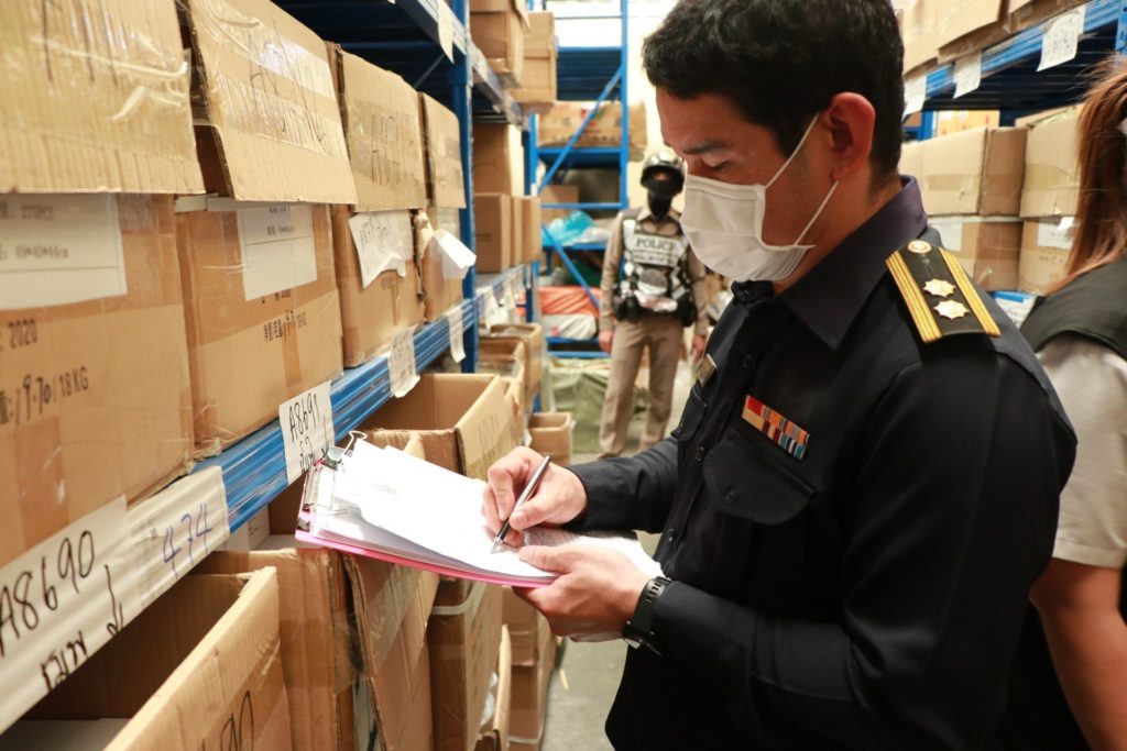 สคบ. ร่วมกับตำรวจสน.ท่าข้ามตรวจค้นสินค้านำเข้าจากต่างประเทศไม่มีฉลากถูกต้องตามกฏหมาย ณ โกดังสินค้า เขตบางขุนเทียน