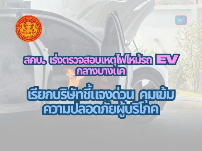 เกิดเหตุไฟไหม้รถยนต์ไฟฟ้าในพื้นที่บางแค สคบ. เร่งตรวจสอบ สงสัยปัจจัยความร้อนสะสมของแบตเตอรี่