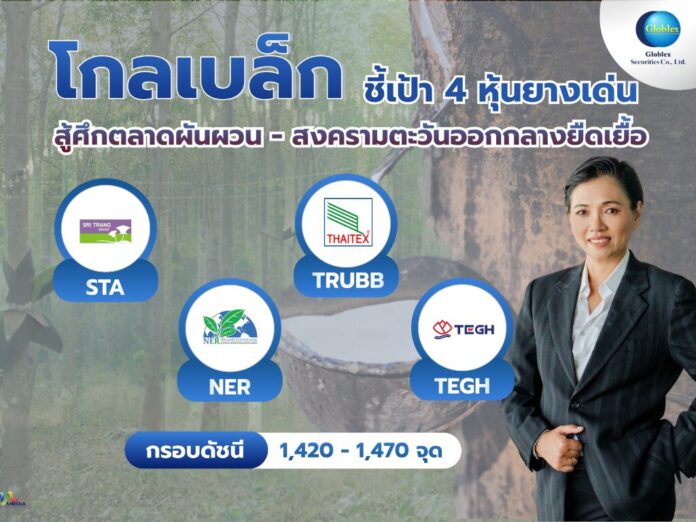 ด้าน นายวัชเรนทร์ จงยรรยง ผู้อำนวยการฝ่ายวิจัย บล. โกลเบล็ก แนะนำกลยุทธ์การลงทุนในหุ้นที่มีปัจจัยบวก โดยเฉพาะกลุ่มธุรกิจยางพาราที่ได้รับอานิสงส์โดยตรงจากราคายางพาราในตลาดโลกที่ยังคงทรงตัวอยู่ในระดับสูง ได้แก่ STA, NER, TRUBB และ TEGH เพื่อลดความเสี่ยงและสร้างโอกาสรับผลตอบแทนที่ดีในช่วงสัปดาห์นี้