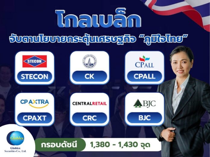 บล. โกลเบล็ก (GBS) คาดดัชนี SET เคลื่อนไหว Sideway UP จับตาการจัดตั้งรัฐบาลใหม่ที่พรรคภูมิใจไทยขึ้นแท่นแกนนำ พร้อมนโยบายกระตุ้นเศรษฐกิจ ให้กรอบดัชนีอยู่ที่ 1,380-1,430 จุด แนะกลยุทธ์ลงทุน 2 ธีมเด็ด หุ้นรับวาเลนไทน์ ชู TNR-AU-MAGURO-ZEN-M รับอานิสงส์จากการจับจ่ายช่วงเทศกาล และหุ้นที่ได้ประโยชน์จากการจัดตั้งรัฐบาลใหม่ ชู STECON-CK-CPALL-CPAXT-CRC-BJC รับแรงหนุนจากมาตรการเศรษฐกิจ