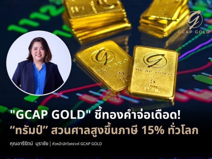 นางสาวอารีรัตน์ มุราชัย หัวหน้านักวิเคราะห์ บริษัท จีแคป จำกัด หรือ GCAP GOLD เปิดเผยว่า ราคาทองคำสัปดาห์นี้ได้รับแรงหนุนจากปัจจัยความเสี่ยงเชิงมหภาค หลังจากที่ศาลฎีกาสหรัฐฯมีมติ 6–3 ซึ่งวินิจฉัยการใช้อำนาจของประธานาธิบดีภายใต้กฎหมาย IEEPA ในการกำหนดอัตราภาษี ที่ผ่านมาไม่ชอบด้วยกฎหมาย ตามข้อจำกัดทางขอบเขตอำนาจบริหาร ดังนั้นจากการเพิกถอนในครั้งนี้ ส่งผลให้ทำเนียบขาวตอบโต้ด้วยมาตรการที่รุนแรงกว่าเดิม โดยการประกาศจัดเก็บภาษีนำเข้าสินค้าจากทั่วโลกในอัตรา 15% ซึ่งมีผลบังคับใช้ทันที และจากการตัดสินใจดังกล่าวได้สร้างแรงสั่นสะเทือนต่อระบบการค้าโลกอย่างรุนแรง และกลายเป็นปัจจัยเร่งหลักที่ผลักดันให้เกิดการเข้าซื้อทองคำ เพื่อป้องกันความเสี่ยงและความผันผวนจากความไม่แน่นอนทางเศรษฐกิจที่เพิ่มสูงขึ้น