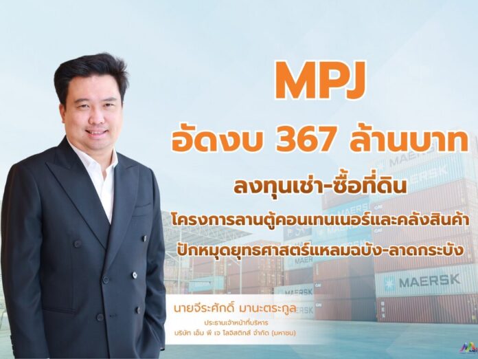 นายจีระศักดิ์ มานะตระกูล ประธานเจ้าหน้าที่บริหาร บริษัท เอ็ม พี เจ โลจิสติกส์ จำกัด (มหาชน) หรือ MPJ ผู้นำโลจิสติกส์แบบครบวงจรและผู้นำด้านบริหารลานตู้คอนเทนเนอร์ เปิดเผยว่า บริษัทฯ ยังคงเดินเกมรุกสู่การขยายอาณาจักรโลจิสติกส์ตามแผนกลยุทธ์ที่วางไว้ ล่าสุดประกาศอัดงบการลงทุนเพิ่ม 367 ล้านบาท สอดรับกับที่ประชุมคณะกรรมการบริษัทครั้งที่ 2/2569 ที่มีมติอนุมัติให้บริษัทย่อย “บริษัท เอ็ม พี เจ ดีสทริบิวชั่น เซ็นเตอร์ จำกัด” (โดย MPJ ถือหุ้นในสัดส่วน 99.99%) เช่าและซื้อที่ดิน เพื่อดำเนินธุรกิจโครงการลานตู้คอนเทนเนอร์ จำนวน 2 รายการ ได้แก่ 1.การทำสัญญาเช่าที่ดิน เพื่อดำเนินธุรกิจลานตู้คอนเทนเนอร์ ขนาดพื้นที่ 24-0-65.1 ไร่ พร้อมสิ่งปลูกสร้าง ระยะเวลาเช่ารวม 4 ปี 4 เดือน โดยมีมูลค่ารวม 102.12 ล้านบาท และ 2.การอนุมัติซื้อที่ดิน เพื่อดำเนินธุรกิจการให้บริการลานตู้คอนเทนเนอร์ (แหลมฉบัง 3) โดยมีมูลค่ารวม 140 ล้านบาท พร้อมอ้างอิงราคาประเมินจากรายงานการประเมินมูลค่าทรัพย์สินรวมของบริษัท