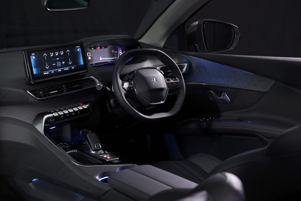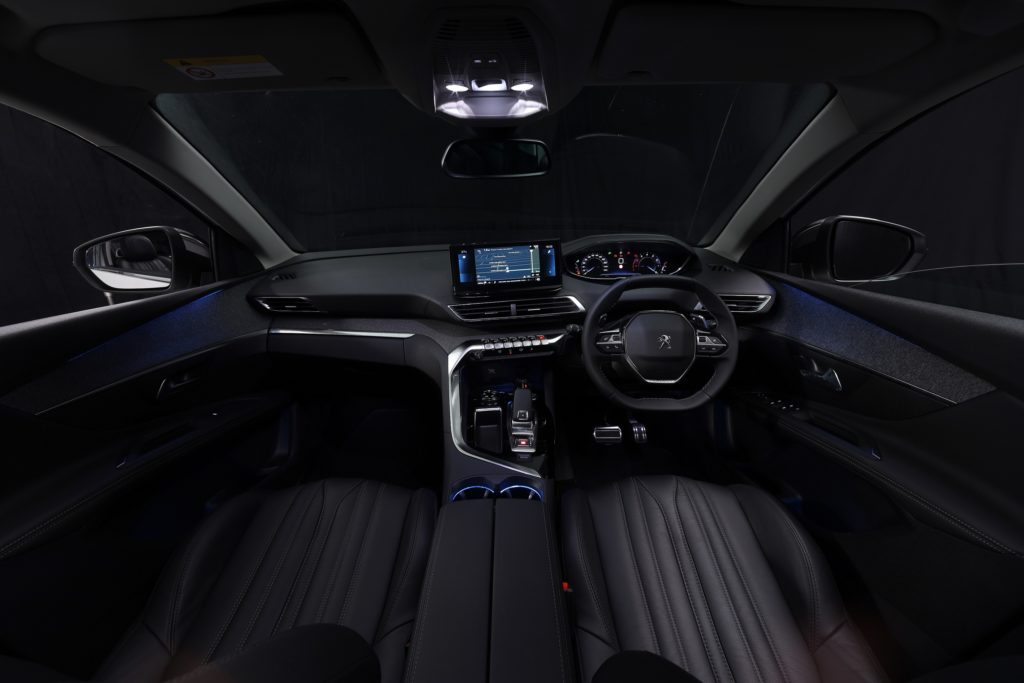 ห้องโดยสารของ 3008 เอสยูวี นับเป็นอีกไฮไลท์สำคัญ ต้อนรับผู้โดยสารอย่างอบอุ่นด้วยเบาะหนัง ตัดกันกับสีด้ายที่ใช้เย็บตะเข็บอย่างลงตัว ตกแต่งตามจุดต่างๆ ด้วยวัสดุผ้าคุณภาพสูง ให้สัมผัสนุ่มนวลและดูหรูหรา มาตรวัดดิจิทัลอเนกประสงค์ขนาด 12.3 นิ้ว ด้านหน้าผู้ขับ สามารถปรับการแสดงผลได้อิสระ พร้อมเพิ่มความละเอียดและความเข้มของจอ เพื่อความคมชัดสูงสุด ติดตั้งทัชสกรีนอเนกประสงค์ขนาด 10 นิ้ว บริเวณกลางแดชบอร์ด จอภาพความละเอียดสูง รองรับการสั่งงานด้วยเสียง ทั้งระบบนำทาง, โทรศัพท์, เครื่องปรับอากาศ และคลื่นวิทยุ มาพร้อม 7 สวิตช์แบบก้านเปียโน (Piano Key Toggle Switches) ที่ดูหรูหรา และช่วยให้สามารถปรับการทำงานของระบบต่างๆ ได้สะดวกรวดเร็ว พร้อมรองรับการชาร์จสมาร์ทโฟนแบบไร้สาย (wireless charging)