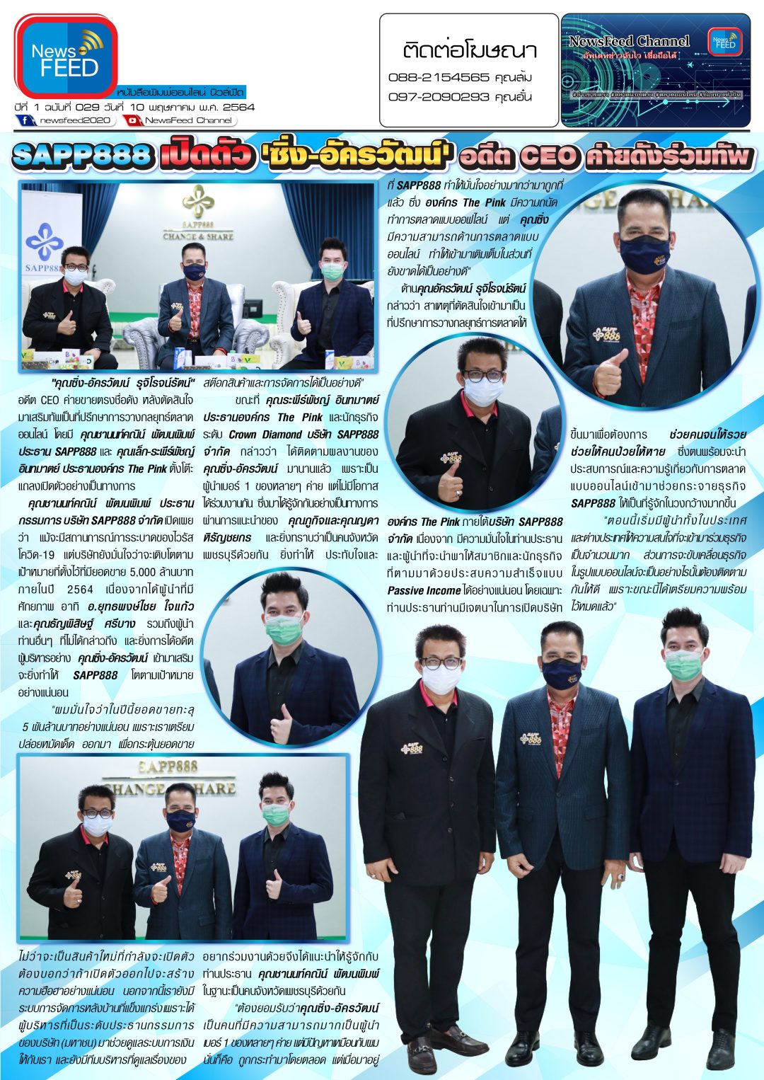 “คุณซิ่ง-อัครวัฒน์ รุจิโรจน์รัตน์” อดีต CEO ค่ายขายตรงชื่อดัง หลังตัดสินใจมาเสริมทัพเป็นที่ปรึกษาการวางกลยุทธ์ตลาดออนไลน์ โดยมีคุณชานนท์คณิน์ พัฒนพิมพ์ ประธาน SAPP888 และคุณเล็ก-ระพีร์พัชญ์ อินทมาตย์ ประธานองค์กร The Pink ตั้งโต๊ะแถลงเปิดตัวอย่างเป็นทางการ