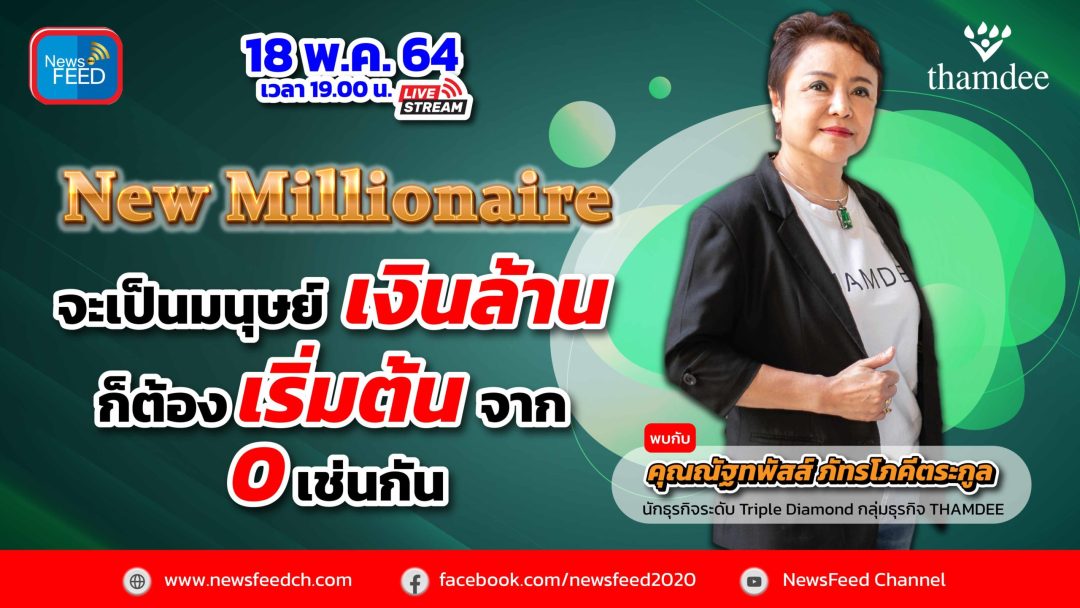 Live คุณณัฐทพัสส์ ภัทรโภคีตระกูล นักธุรกิจระดับ Triple Diamond กลุ่มธุรกิจ THAMDEE “New Millionaire จะเป็นมนุษย์เงินล้านได้..ก็ต้องเริ่มต้นจาก 0 เช่นกัน”