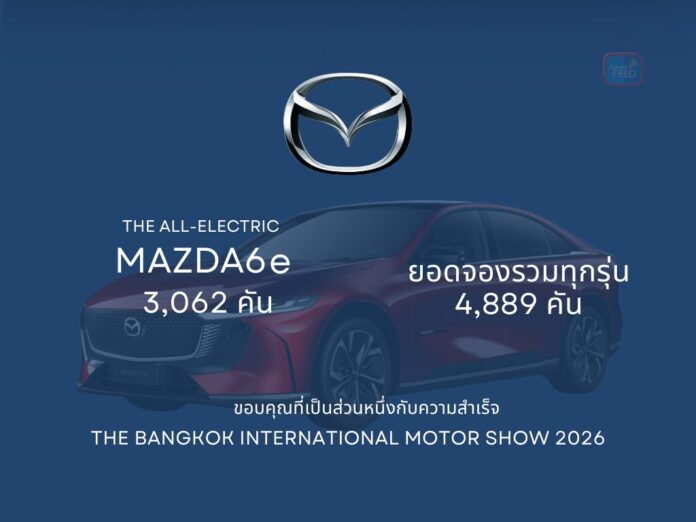 มาสด้าแรงไม่หยุดฉุดไม่อยู่คว้ายอดจองในงานมอเตอร์โชว์ทะลุเกือบ 4,900 คัน โดยเฉพาะยอดจองรถไฟฟ้า The All-Electric Mazda6e มาแรงสุด หลังจากเปิดตัวและเปิดราคาจำหน่ายในงานฯ โดนใจลูกค้าแบบเต็มๆ ส่งผลทำให้ยอดจองมาสด้าในปีนี้เติบโตเพิ่มขึ้นอย่างเห็นได้ชัด ท่ามกลางสมรภูมิการแข่งขันที่รุนแรงของตลาดรถยนต์ไทย ในขณะที่รถยนต์เครื่องยนต์สันดาปทุกรุ่นได้รับนิยมเช่นเดียวกัน อาทิ รถยนต์นั่งน้องเล็ก Mazda2 และรถครอสโอเวอร์เอสยูวี Mazda CX-30 และ Mazda CX-3 ก็ยังคงได้รับการตอบรับเป็นอย่างดีเช่นเคย และเพื่อเป็นการตอบรับต่อฟีดแบคและกระแสความสนใจของลูกค้าต่อยนตรกรรมไฟฟ้า The All-Electric Mazda6e มาสด้าเตรียมเดินสายโร้ดโชว์จัดกิจกรรมเพื่อให้ลูกค้าได้ทดลองขับ Mazda6e ที่โชว์รูมมาสด้าในจังหวัดต่างๆ ในเร็วๆ นี้ ซึ่งผู้ที่สนใจสามารถติดตามความเคลื่อนไหวได้ผ่านช่องทาง www.mazda.co.th