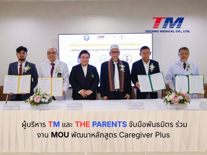 ดร.สุนทรี จรรโลงบุตร ประธานเจ้าหน้าที่บริหาร บริษัท เทคโนเมดิคัล จำกัด (มหาชน) หรือ TM และนายแพทย์วิรุฬห์ พรพัฒน์กุล ประธานเจ้าหน้าที่บริหาร บริษัท เดอะ พาเร้นส์ จำกัด ในเครือ TM ผู้ให้บริการ THE PARENTS WELLNESS AND REHABILITATION CENTER ร่วมพิธีลงนามบันทึกข้อตกลงความร่วมมือ (MOU) หลักสูตร Caregiver Plus กับพันธมิตร นายประสิทธิ์ มะหะหมัด เลขานุการจุฬาราชมนตรี นายประสาน บุญส่ง ผู้แทนจากสำนักงานคณะกรรมการกลางอิสลามแห่งประเทศไทย นายแพทย์กษิดิษ ศรีสง่า นายกสมาคมแพทย์มุสลิมแห่งประเทศไทย และนายอนีส แบดอเลาะ ศูนย์ภาษาอาหรับกรุงเทพ มหาวิทยาลัยเกริก เพื่อพัฒนาหลักสูตรผู้ดูแลผู้สูงอายุ 420 ชั่วโมง ที่โรงเรียนการบริบาล เดอะ พาเร้นส์ ให้มีความรู้ ทักษะ และความเข้าใจอย่างรอบด้าน ทั้งด้านวิชาชีพการบริบาลสุขภาพ ทักษะการสื่อสารภาษาอาหรับ และหลักปฏิบัติทางศาสนาอิสลาม