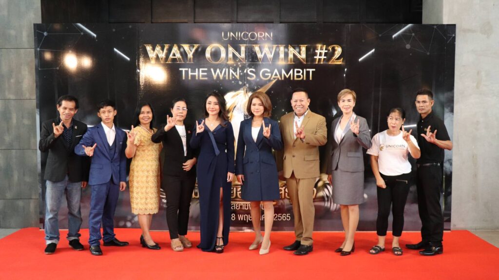 เมื่อวันที่ 8 พฤษภาคม 2565 ที่ผ่านมา บริษัท ยูนิคอร์น บิซิเนส คอร์ปอเรชั่น จำกัด หรือ Unicorn ได้จัดงาน Way On Win ครั้งที่ 2 The Win’s Gambit ปลุกกลเม็ด…ต่อยอด…เกมส์ธุรกิจ โดยงานเริ่มต้นด้วยแสดงวิสัยทัศน์ Mission &Vision ของดร.จอย-ภัทร์พิชาภา ธนะลีละผลิน ประธานผู้ก่อตั้ง ตลอดระยะเวลา 1 ปีที่ผ่านมายูนิคอร์นเติบโตอย่างต่อเนื่อง สวนกระแสยุคโควิด ด้วยจำนวนผู้สมัครสมาชิก ณ ปัจจุบันจำนวน 20,952 รหัส มีผู้รับรายได้หลักหมื่นจำนวน 447 รหัส, ผู้รับรายได้หลักแสนจำนวน 40 รหัส และผู้รับรายได้หลักล้านจำนวน 2 รหัส